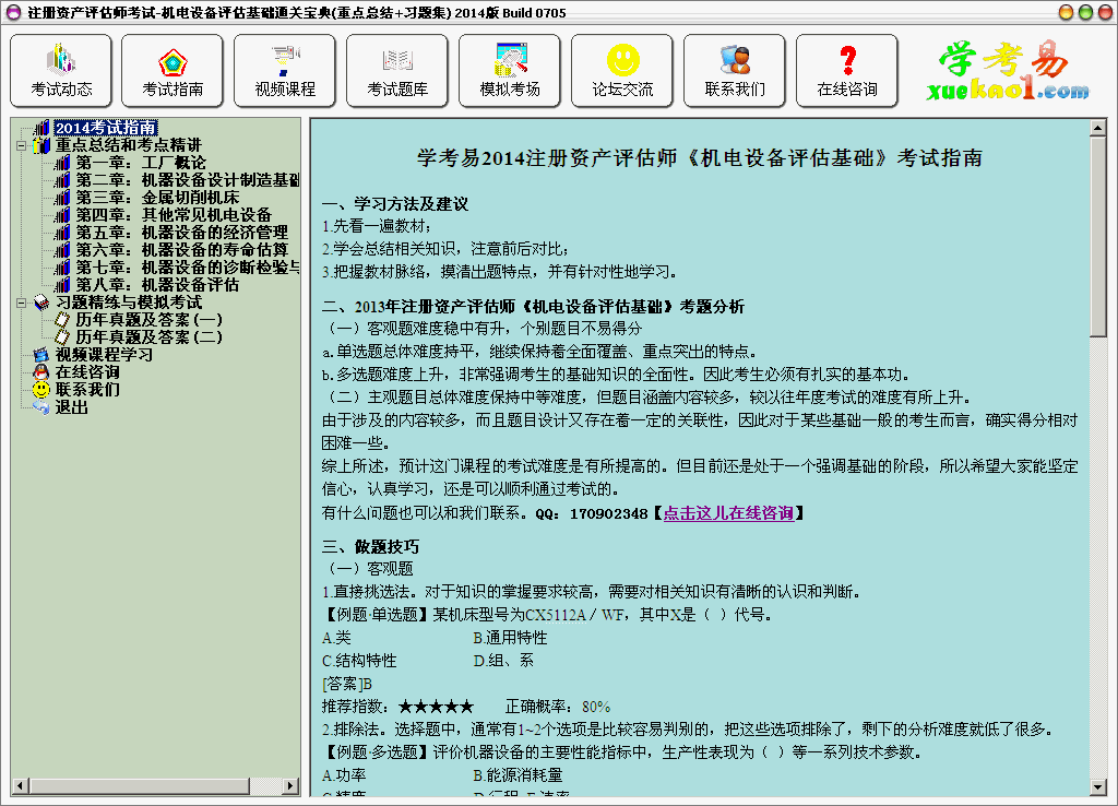 注册资产评估师考试-机电设备评估基础通关宝典(重点总结+习题集)是一款由【学考易】开发的学习辅助软件,适用于2014注册资产评估师考试。软件整合了多方对于注册资产评估师考试的信息资源、考点汇总、视频课程和习题库,帮助广大考生实现考试重点逐个击破,技巧性内容踏实掌握,时时巩固学习效果,全方位满足考生的学习需要。学考易与许多考试机构保有密切的合作关系,保证资料和选题具有权威性!